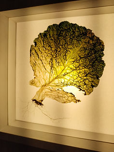 Kitchen garden 3 és una de les composicions de Paul Daly, formada per rodanxes de cogombre, carbassó, pastanaga, pell ceba, taronja, porro, fulla de col, llorer, enciam i arrels.